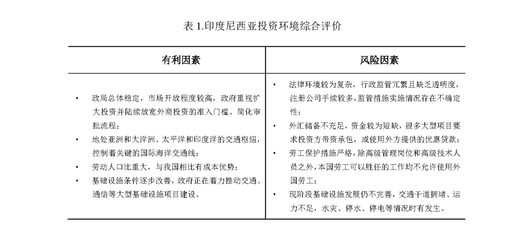 (1)印度尼西亞擁有相對年輕的人口結構、強勁的國內需求、穩定的政治局勢、豐富的自然資源和良好的宏觀經濟政策,但其基礎設施建設發展不充分,交通運力不足,電力供應不穩定,互聯網覆蓋率不高,一定程度上制約其經濟增長和外商投資信心。