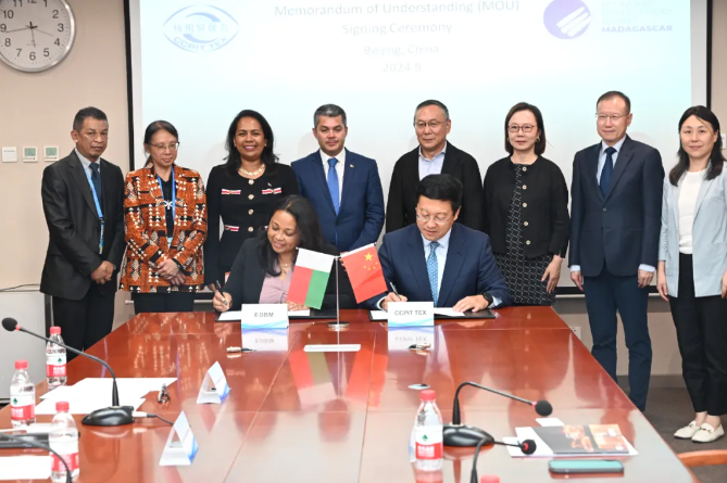 2024年9月5日,中國國際貿(mào)易促進(jìn)委員會紡織行業(yè)分會和馬達(dá)加斯加經(jīng)濟(jì)發(fā)展局簽署合作備忘錄儀式在北京舉行。