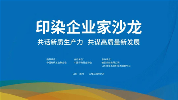 ?2024年6月13日,由中國紡織工業(yè)聯(lián)合會指導(dǎo),中國印染行業(yè)協(xié)會主辦,愉悅家紡有限公司、山東省生態(tài)紡織技術(shù)創(chuàng)新中心承辦的印染企業(yè)家沙龍活動在山東濱州舉行。