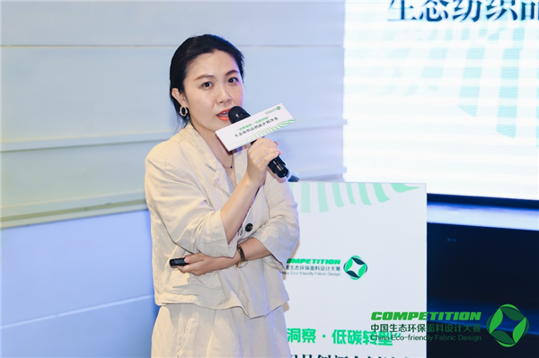 “在綠色設(shè)計、清潔生產(chǎn)、綠色物流、循環(huán)應(yīng)用等領(lǐng)域,我們都在強(qiáng)調(diào)通過綠色技術(shù)推動綠色價值鏈的創(chuàng)新。”中國紡織信息中心創(chuàng)意設(shè)計部高級產(chǎn)品經(jīng)理于婷婷在會上對2023第六屆中國生態(tài)環(huán)保面料設(shè)計大賽主題和評審標(biāo)準(zhǔn)進(jìn)行了解讀。她指出,綠色消費(fèi)一方面是消費(fèi)者的選擇,另一方面更有賴于供給側(cè)的引導(dǎo)。行業(yè)需要從時尚性、創(chuàng)新性、商業(yè)性等綜合維度,將“綠色時尚”從設(shè)計端貫穿到產(chǎn)品端。