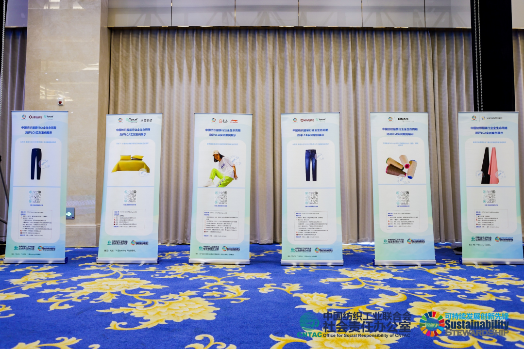 會(huì)場(chǎng)兩側(cè)展示了CNTAC-LCA工作組的碳足跡測(cè)評(píng)案例,這些案例涵蓋了童裝、牛仔褲、西裝、家紡等不同紡織產(chǎn)品的實(shí)測(cè)碳足跡,為其他企業(yè)和產(chǎn)品提供了參考和啟示。通過(guò)這些案例,與會(huì)者可以更直觀地了解碳足跡測(cè)評(píng)的方法和實(shí)際應(yīng)用,進(jìn)一步推動(dòng)行業(yè)的低碳發(fā)展。