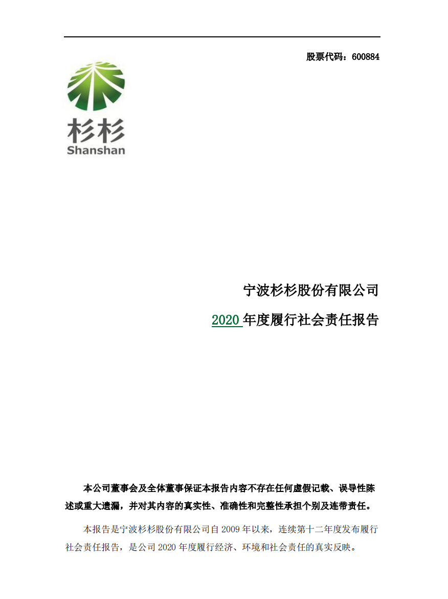 寧波杉杉股份有限公司2021年度履行社會責任報告